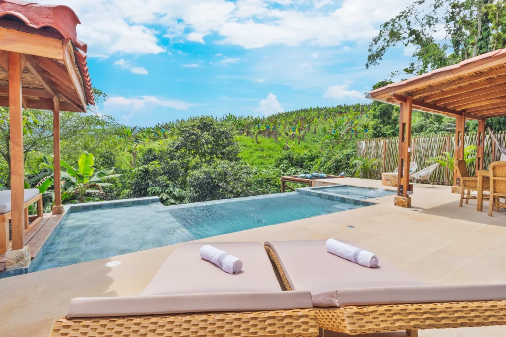 Villa privada inmersa en la naturaleza, ideal para quienes buscan comodidad, tranquilidad y vistas increíbles. Con espacios amplios y una piscina que se funde con el horizonte, es perfecta para desconectarse del ritmo cotidiano en un entorno natural privilegiado.